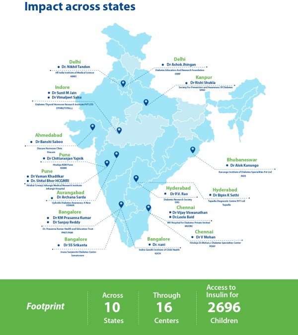 The CDiC program is another initiative driven by NNEF in India. The vision of the Changing diabetes in children program is, “to initiate and strive to provide comprehensive diabetes care to the economically underprivileged children below 18 years with type1 diabetes”. The CDiC program helps in creating a platform for affordable and easily accessible of effective diabetes management for unprivileged children with Type-1 diabetes.